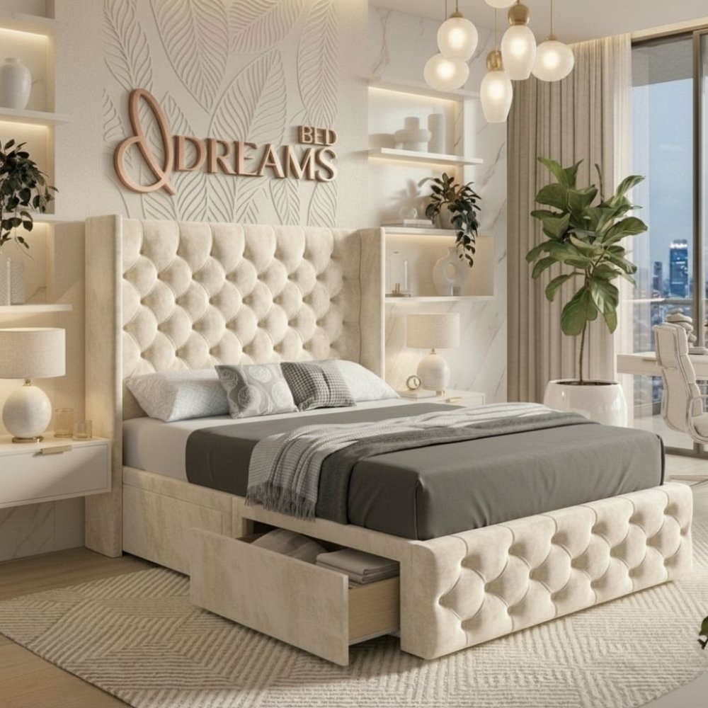 Every Dreams Bed comes with a stylish matching headboard. You can choose a design that fits your room perfectly and gives a clean, premium look.